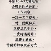 招聘 招聘:一对一聊天员要求女性,年龄18-40无需经验,会聊天性格开朗,形象气质佳,工作内容,一对一文字聊天,视频聊天,正规绿色平