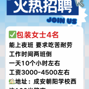 招聘 招聘启事 ✅包装女士4名 能上夜班 要求吃苦耐劳 工作时间两班倒 一天10个小时左右 工资3000-4500左右 地址:成安朝阳学校西边100